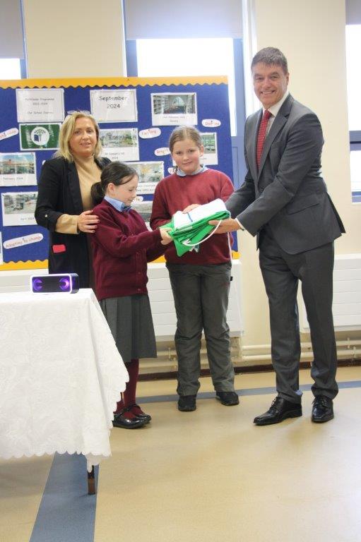 Saint Joseph’s School was en fete in celebrating major achievements. The school obtained a complete energy refit as part of the Pathfinder Programme 2024 – 2024 at a cost of €4.5million, beginning a new chapter in the life and times of Saint Joseph’s School. A plaque to honour this achievement was unveiled by former retired principal Mairead Corbally. In addition Gerry Murphy from Met Eireann and RTE was present to raise the schools eight Green Flag, which is a major achievement for a school community. Congratulations to Barbara Gaynor, Chairperson of the Board of Management, Mary Kennelly, School Principal and Valerie Norton, deputy Principal and their teams on these outstanding achievements.